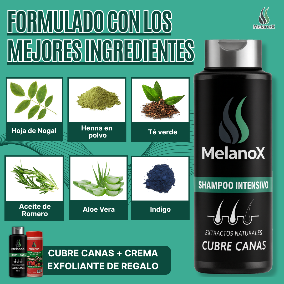 No. MelanoX está elaborado con extractos naturales, colágeno y vitaminas. No contiene amoníaco, sulfatos ni colorantes artificiales, por lo que no mancha ni daña el cuero cabelludo.