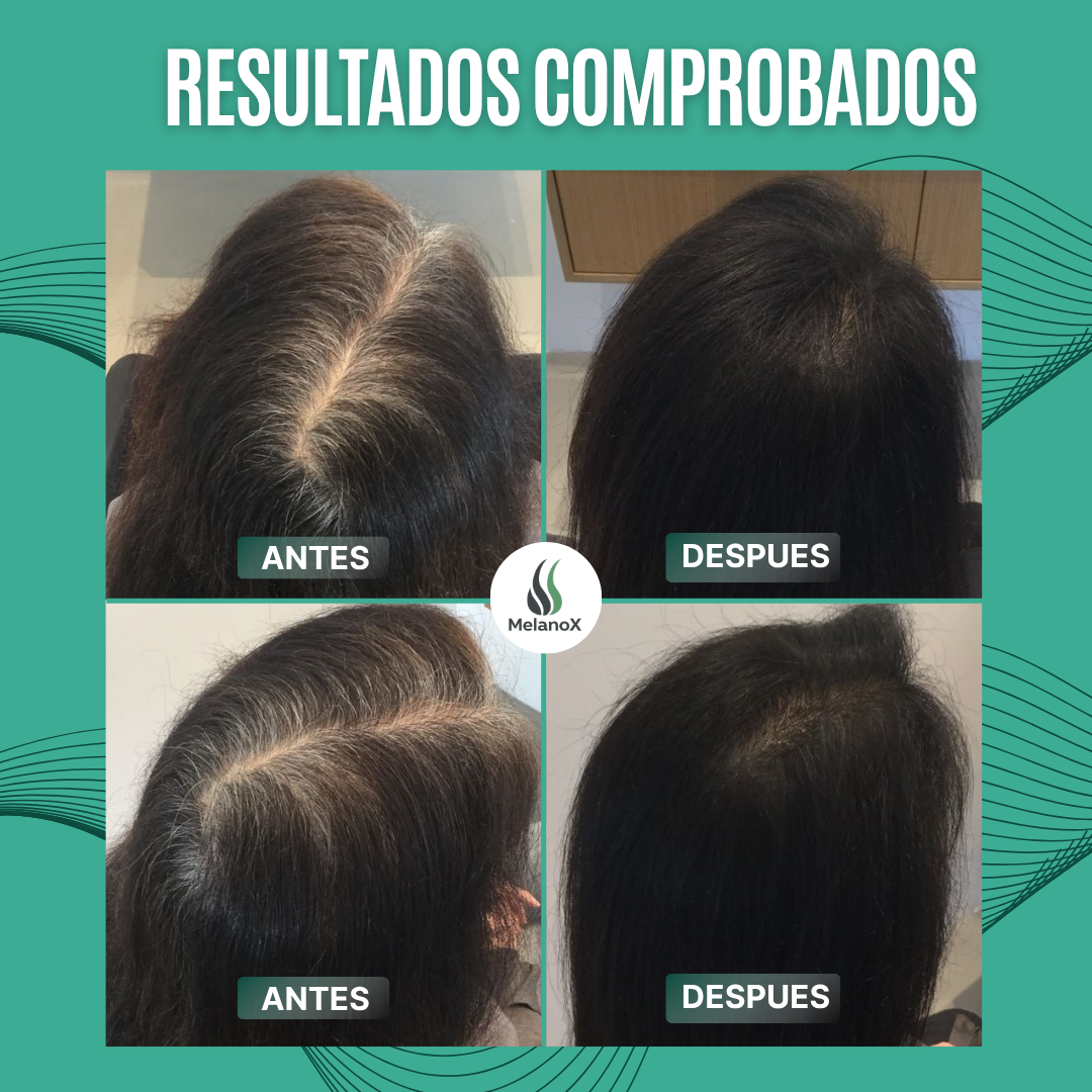 MelanoX, gracias a su fórmula natural avanzada, ayuda a eliminar las canas de forma segura, eficaz y duradera. Su tecnología capilar estimula la melanina natural del cabello, restaurando el color oscuro y promoviendo una apariencia más joven, fuerte y saludable.