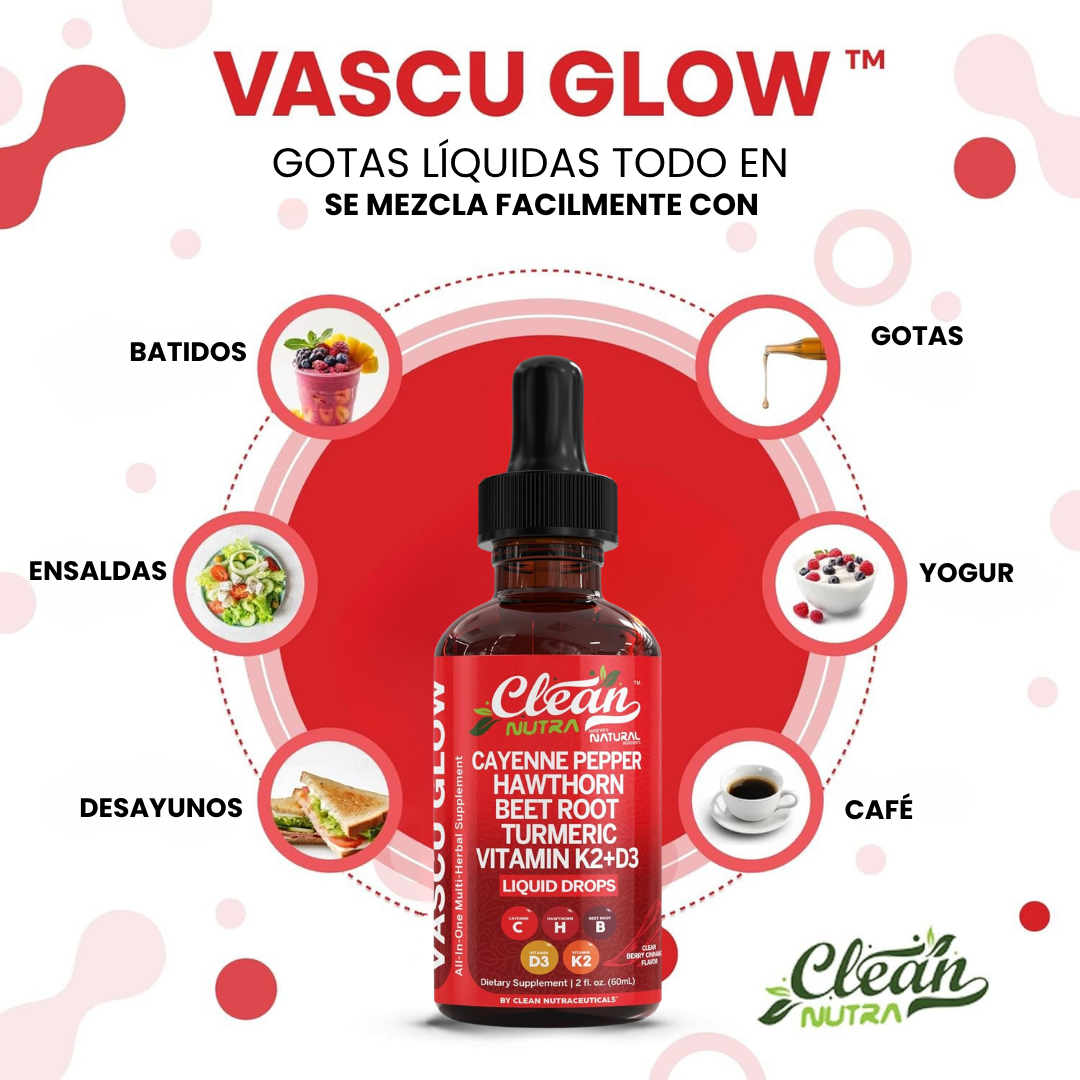 Vascu Flow ayuda a regular la presión arterial de forma natural, apoyando el equilibrio sin químicos agresivos. Su fórmula también reduce la pesadez en las piernas, ideal para quienes pasan muchas horas de pie o sentados. Para mejores resultados, toma 1 a 2 medidores (aprox. 15 gotas)